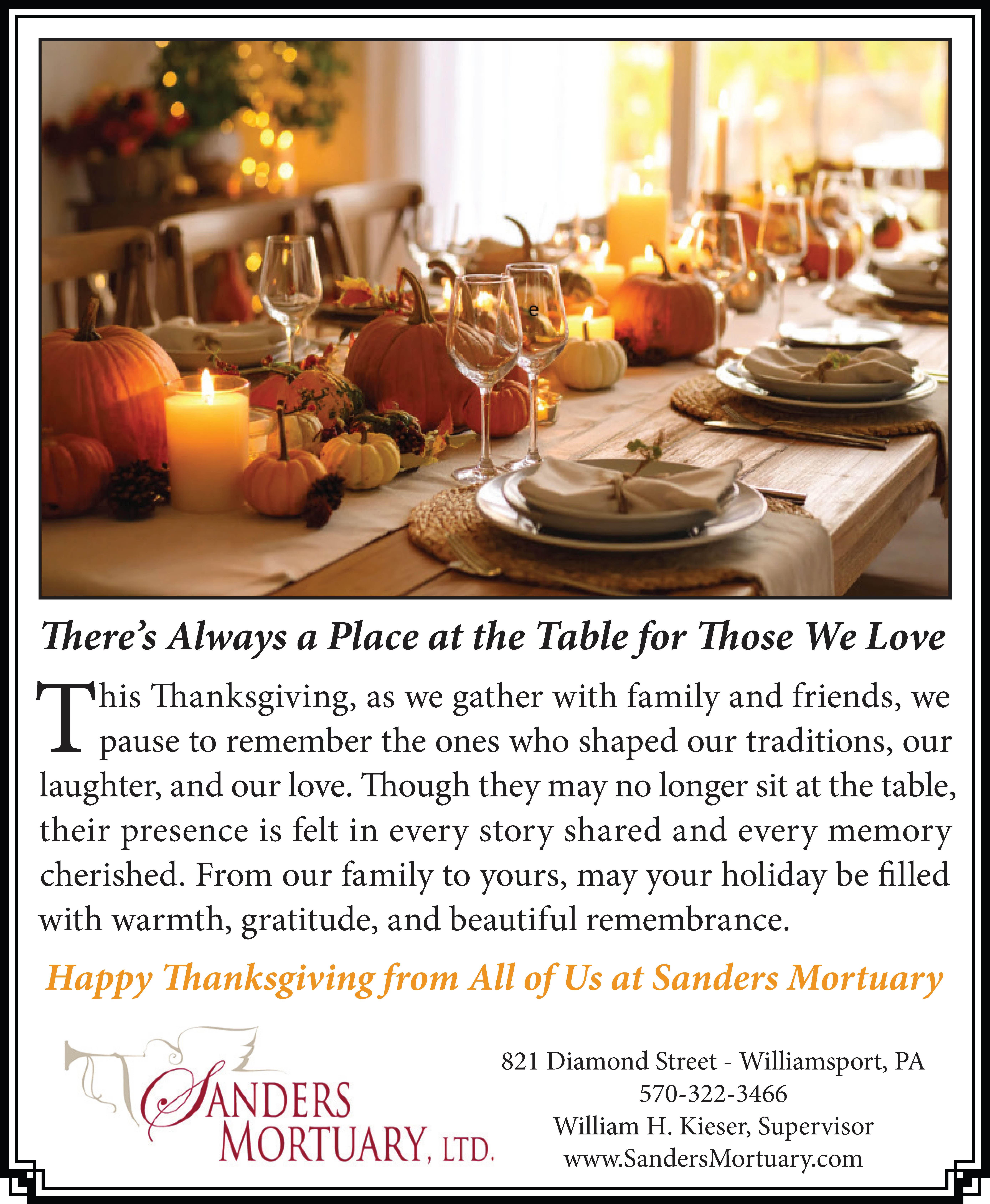 In local sports, in the last high school basketball games before the holiday, South Williamsport defeated Northumberland, 41-37, St. Joe’s lost to Lewisburg, 37-32, Jersey Shore defeated St. Mary’s 35-33 in overtime, and the Williamsport Millionaires lost to Hazle Township 43-38.
