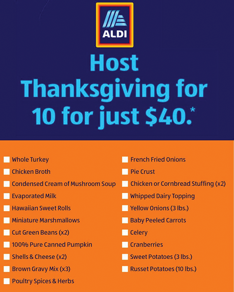 And because I can’t sing Aldi’s praises enough — no, they’re not paying me! — they’ve rolled out a holiday meal plan that’s hard to beat: dinner for 10 people for just $40. I’ve included the list on this page. It may not be fancy, but it’s hearty, affordable, and gets the job done.