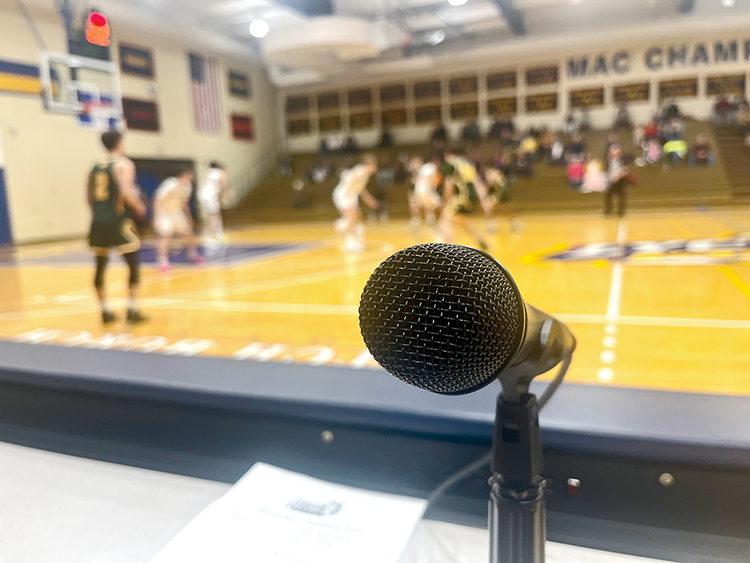 My guys from Montoursville helped me get settled. Kevin Carl does the clock, and Kevin Mac keeps the score. Joe gave me a few instructions, and he cut the cord. The clock hit zero. And I was ready to go. “Ladies and Gentlemen. On behalf of Lycoming College and the Landmark Conference, we welcome you to tonight’s game….”