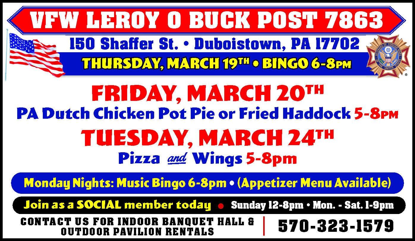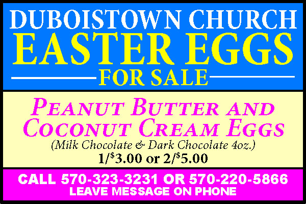 DUBOISTOWN CHURCH133 Summer Street.Sunday 10am.“24 Hours that Changed theWorld-The Torture andHumiliation of the King”.717-813-3992.197349