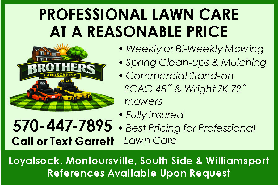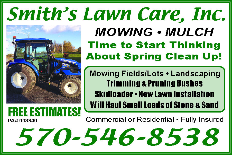 SCOTT'S LAWN CARE.OUR 27TH YEAR IN BUSINESS!SPRING AND FALLCLEAN-UP. Residential AndCommercial Mowing And Landscaping.Free Estimates. FullyInsured. 570-419-6326. 197480