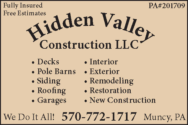 BUILDING FOR RENTFOR RENT 24’ X 36’Building. Water, Wood Stove,Electric. Was A Hunting Cabin.2 Month’s Rent PaymentUp Front Then Monthly. LotsOf Parking. Land Line 570-360-5557. Cell, Text Only,272-230-9489. Close To HundredsOf Acres Of State GameLands. 1 Mile From JerseyShore, 2 Miles From Williamsport.Contact Tim Palmatier.197634