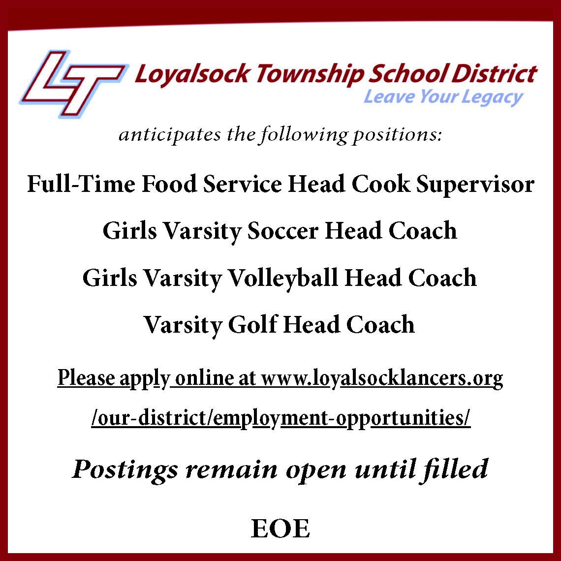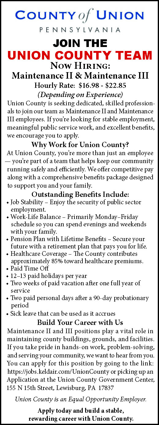 ADULT OUTREACHPROFESSIONAL. The LycomingCounty Library Systemseeks an Adult OutreachProfessional to provide mobilelibrary service to adults andyouth across Lycoming County.Primary responsibilities includedriving a mobile library to publiclocations and institutionsacross Lycoming County, providinglibrary service on the vehicle,and coordinating a scheduleof weekly stops throughoutthe year. The successful candidatewill have excellent customerservice skills, the ability towork with adults and youth, demonstrablecomputer efficiency,strong organizational andtime management skills, clearwritten and verbal communication,and the ability to work independentlyand collaborate aspart of a team. Applicants mustbe able to lift up to 50 poundsand be aware of the physicaldemands of the position (see jobdescription). A valid PA driver’slicense and a clean driving recordare required. Driving experiencewith larger vehicles isrecommended. Coursework orexperience in Library Serviceis preferred. This is a full-timeposition scheduled for 37.5hours per week with a wage of$18-21 per hour plus benefits.The schedule for this position isMonday through Friday, 8:00am – 4:00 pm; however, dailystart and end times vary seasonallydepending on the outreachvehicle schedule. Occasionalevening and weekend work isrequired. Full job description isavailable at lclspa.org/careers.Please submit a cover letter andresume to Karen Confer electronicallyat kconfer@jvbrown.edu. To receive first consideration,please apply by March20, 2026. The final applicationdeadline is March 31, 2026.The successful candidate has ananticipated start date no earlierthan mid-April 2026, contingenton the return of clearances.197648