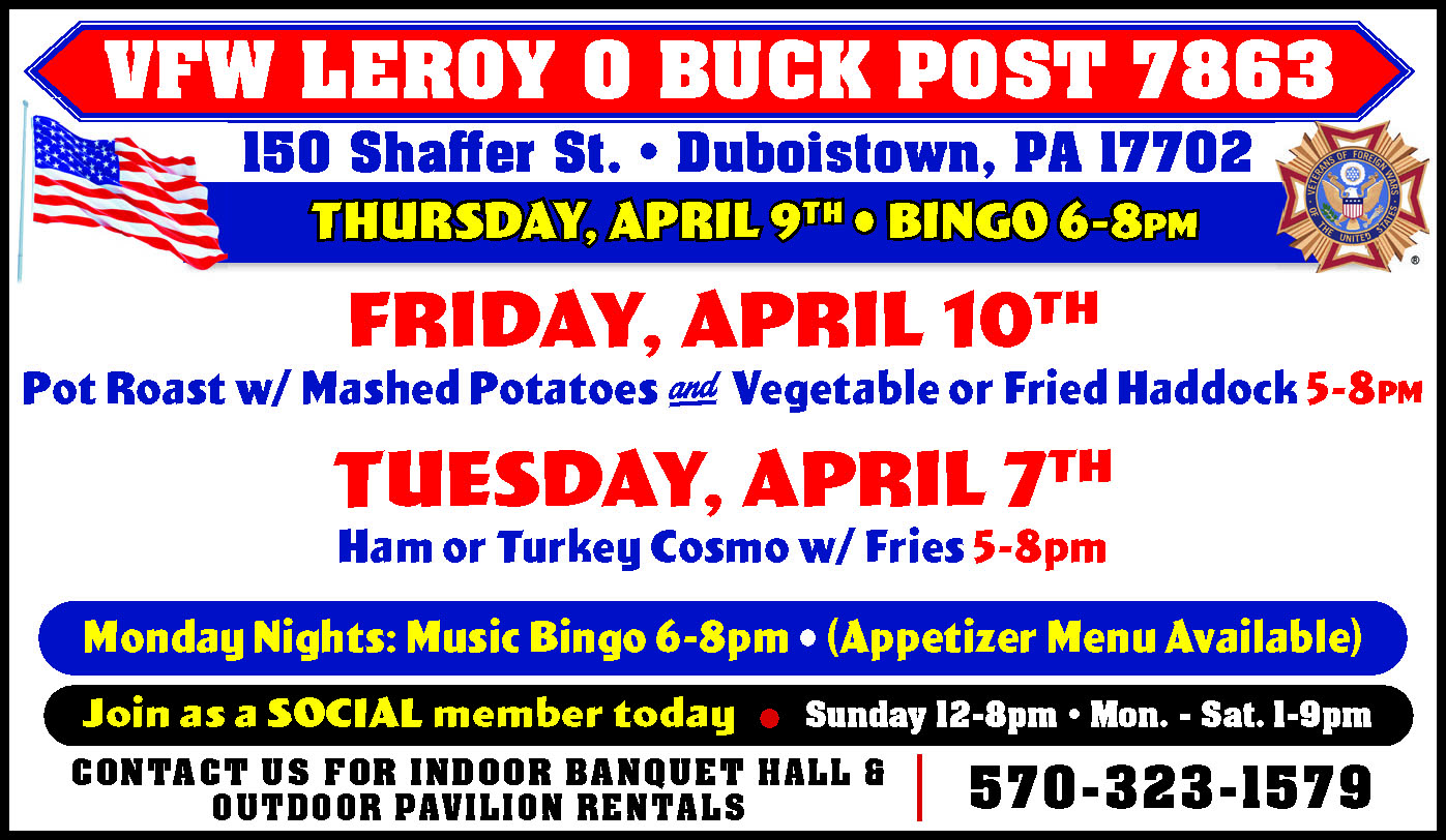 DUBOISTOWN CHURCH 133 Summer Street. Sunday 10am. “Passover: Why Did Jesus Have to Die?”. 717-813-3992. 198043