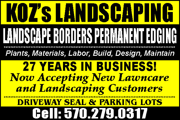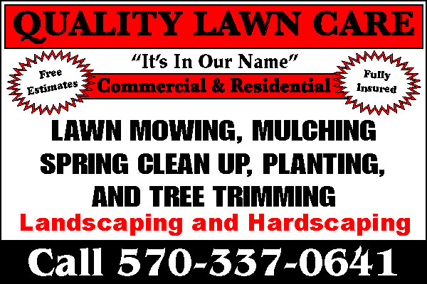 SCOTT'S LAWN CARE. OUR 27TH YEAR IN BUSINESS! SPRING AND FALL CLEAN-UP. Residential And Commercial Mowing And Landscaping. Free Estimates. Fully Insured. 570-419-6326. 198023