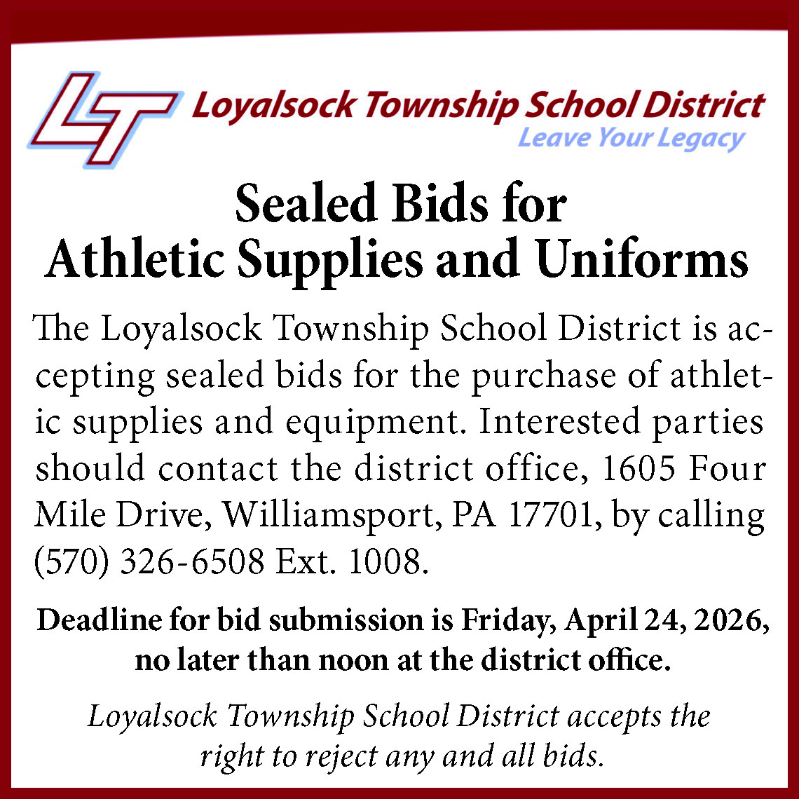ADVERTISE your Yard Sale, Garage Sale, or Rummage Sale! Only $7.95 for 5 lines! Contact Jaimie Today!! Call Webb Weekly at (570) 326-9322 or email classifi eds@webbweekly.com