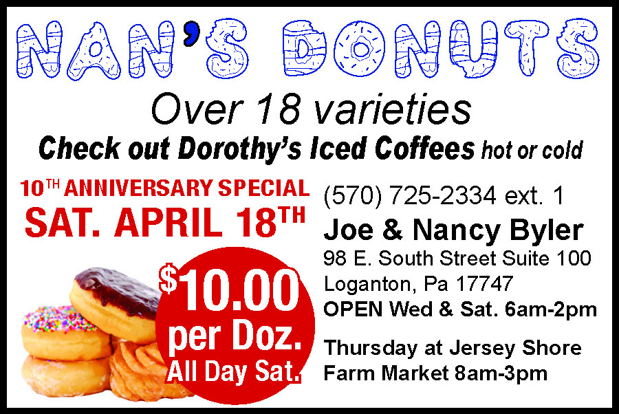 ESTATE SALE: 2760 Rte 654 Hwy Williamsport on April 10 and 11 at 8am. Sofa Sleeper, Dining room set, Antique Trunks, Glassware, washer/dryer (like new), Freezer, Ryobi mower & trimmer, Tools, Drop leaf table, Rocking Chairs, Jewelry, Clothing, and Many household items. Photos on FB. All priced to sell. You won’t want to miss this sale. Cash or Check only. 198044